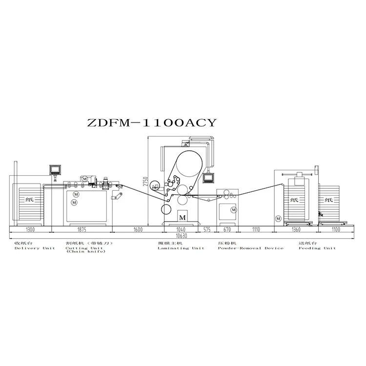 Рішення ZDFM-ACY: блок видалення порошку нашої машини для ламінування з автоматичним ланцюговим ножем гарантує, що поверхня з покриттям буде кришталево чистою та без будь-яких дефектів; блок ланцюгового ножа гарантує, що край товстої ПЕТ плівки або металевої плівки буде розрізаний ножем.